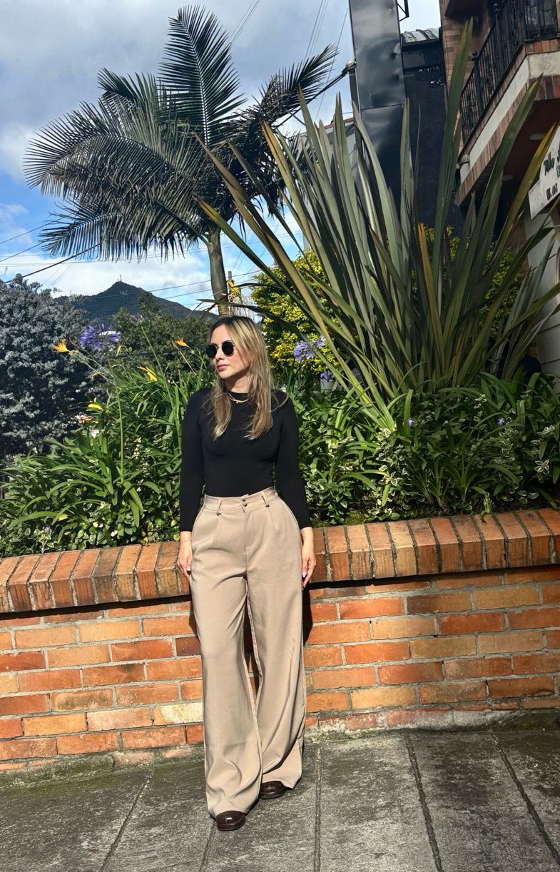 Este pantalón palazzo en tono nude es sinónimo de elegancia atemporal y versatilidad. Diseñado con un corte amplio y fluido, ofrece movimiento y comodidad sin perder la sofisticación. Su cintura alta estiliza la figura y alarga visualmente las piernas, mientras que las pinzas frontales aportan estructura y un acabado impecable.