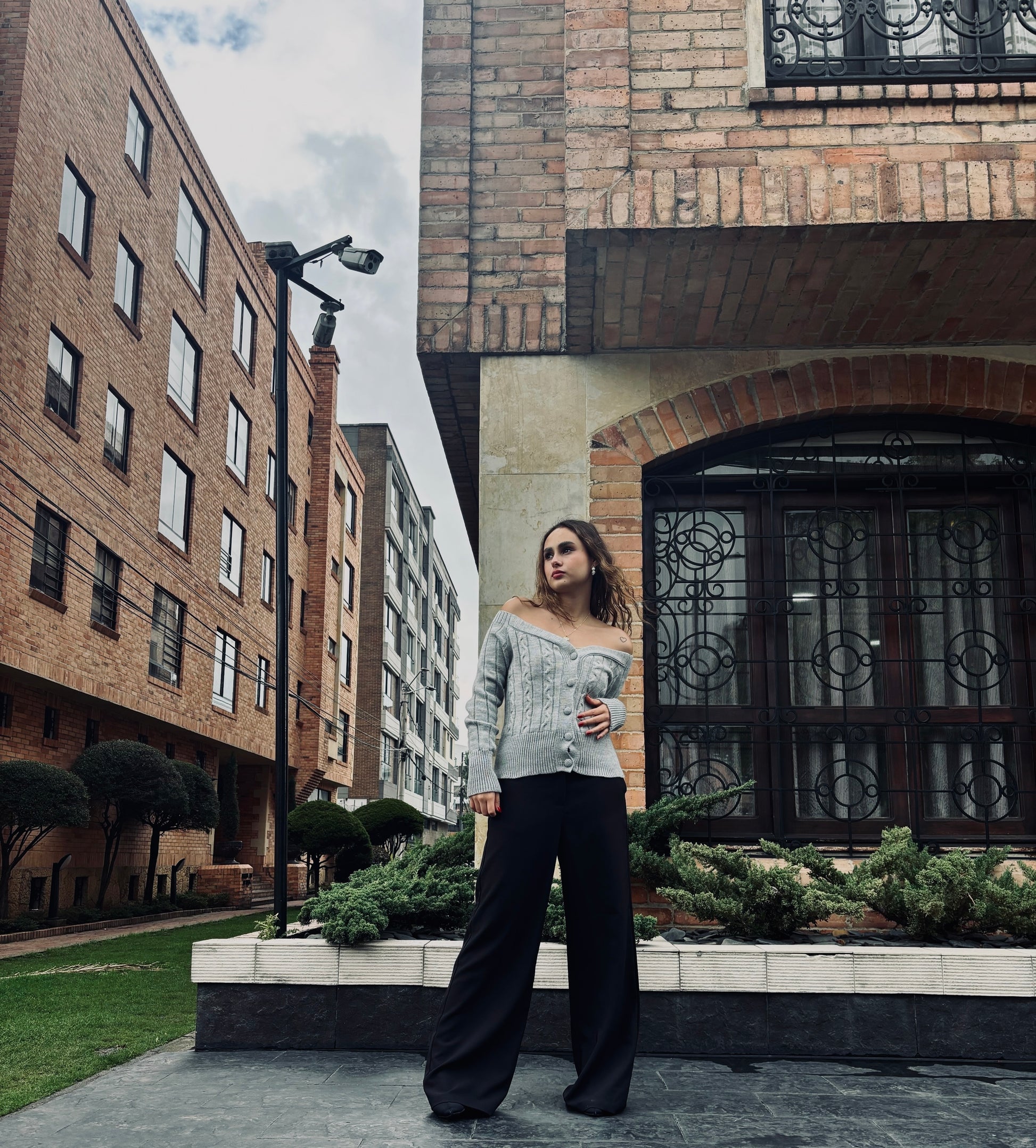 Su tono gris claro lo hace combinable con todo, y su caída ligera te abraza con elegancia. Perfecto para citas casuales, brunch con amigas o tardes de otoño en la ciudad